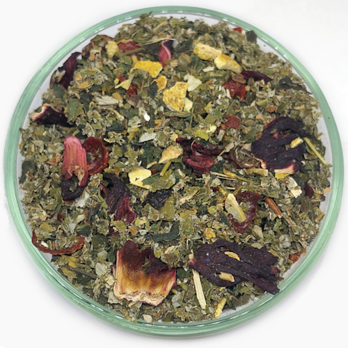 Sastav: list maline (Rubus udaeus), list koprive eko (Urtica dioica), plod šipka bez koštica eko (Rosa canina), cvijet hibiskusa eko (Hibiscus sabdariffa), korica slatke naranče eko (Citrus x aurantium)